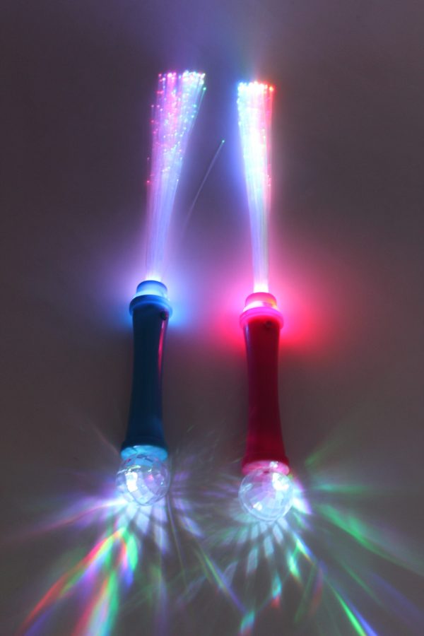 מנורת לד מחליפת צבעים מזרימה אור אל הסיבים האופטים. ידית פלסטיק נוחה ועליה כפתור ל 3 אופציות הפעלה.