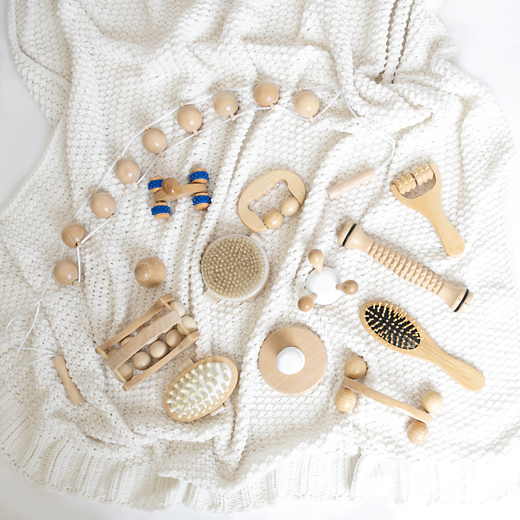 מארז בן 14 חלקים מעץ למסאז'. להרגעת מתחים , כעס וחוסר שקט.