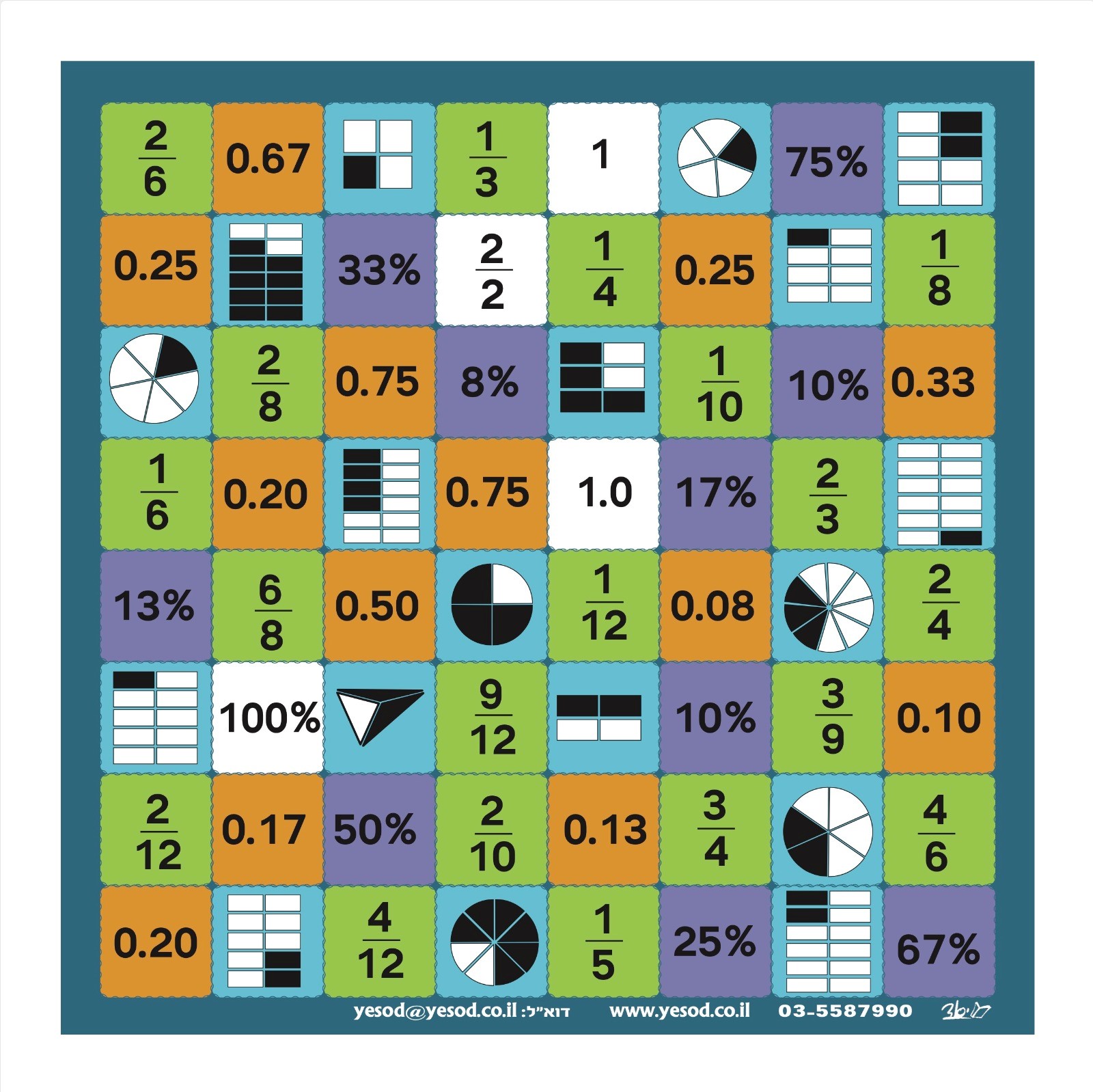 או דסקיות על יצוגי שברים עשרוניים ואחוזים(. וריאציה: מטילים קוביית שברים פשוטים.