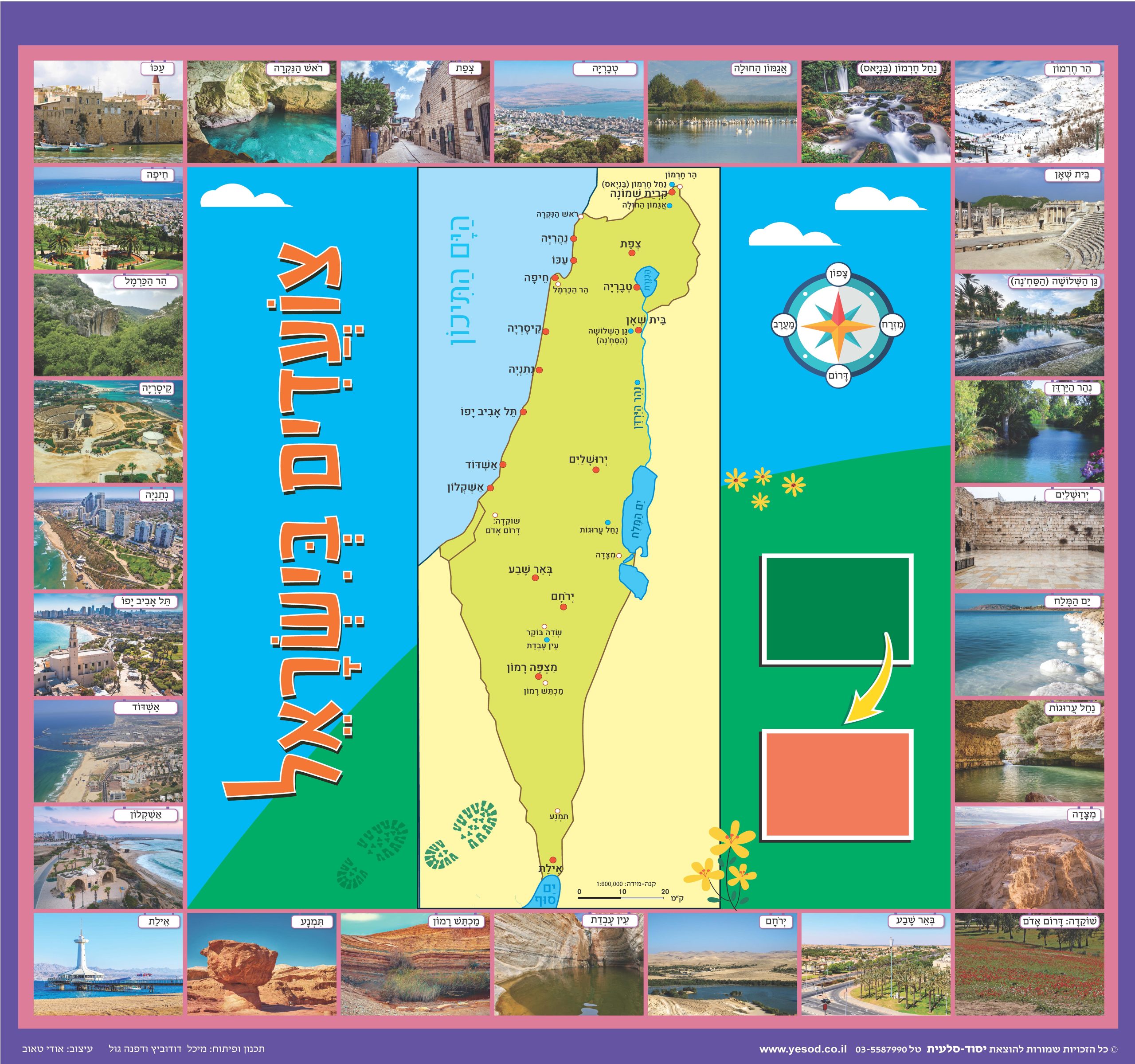 באמצעות משחק וצעידה יכירו הילדים את מפת ישראל ו 28 מקומות וישובים. הפעילויות מזמנות שימוש באוצר מילים מתאים, ניסוח משפטים, תיאורים והסברים. מומלץ מכתה ב – ז.